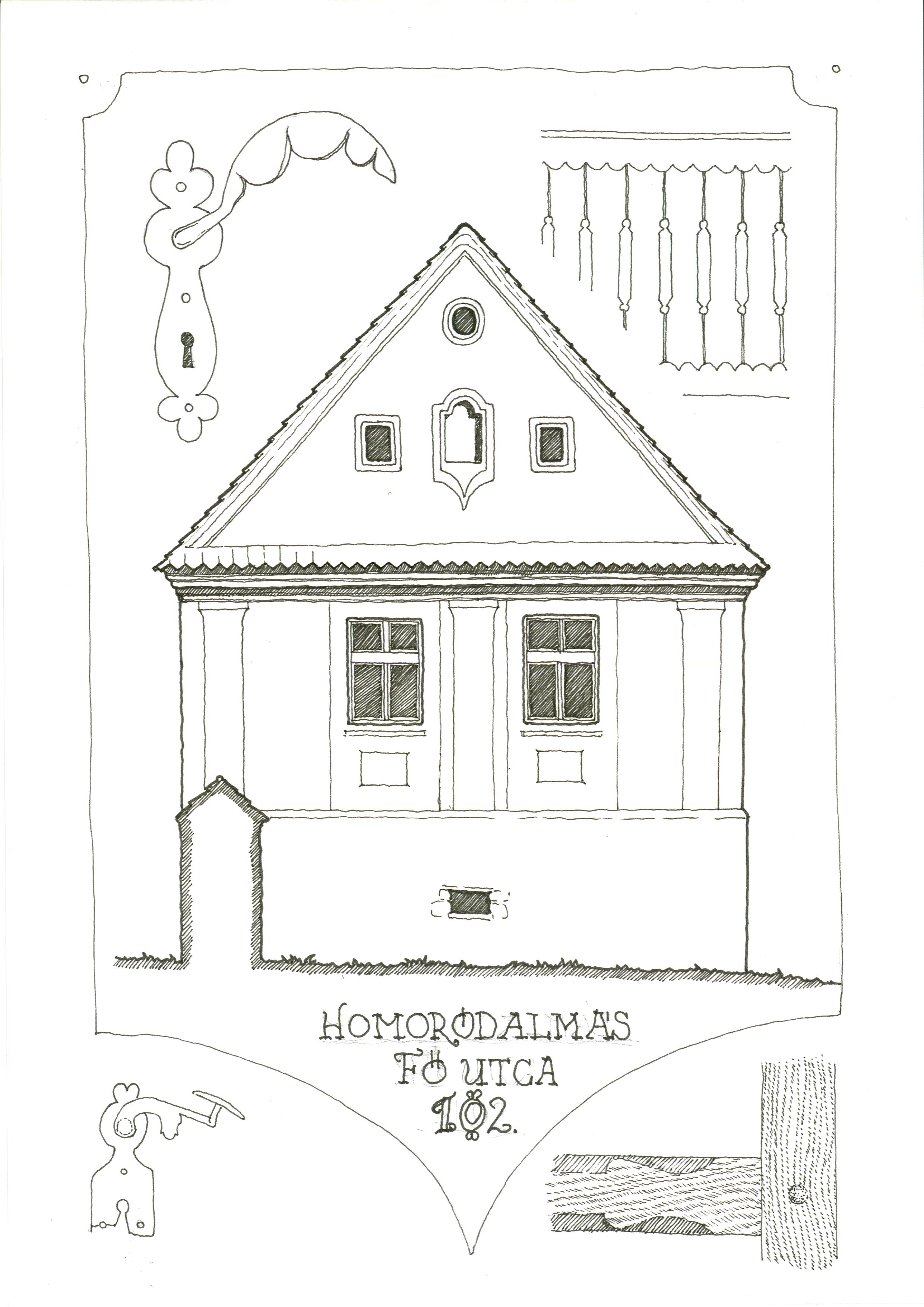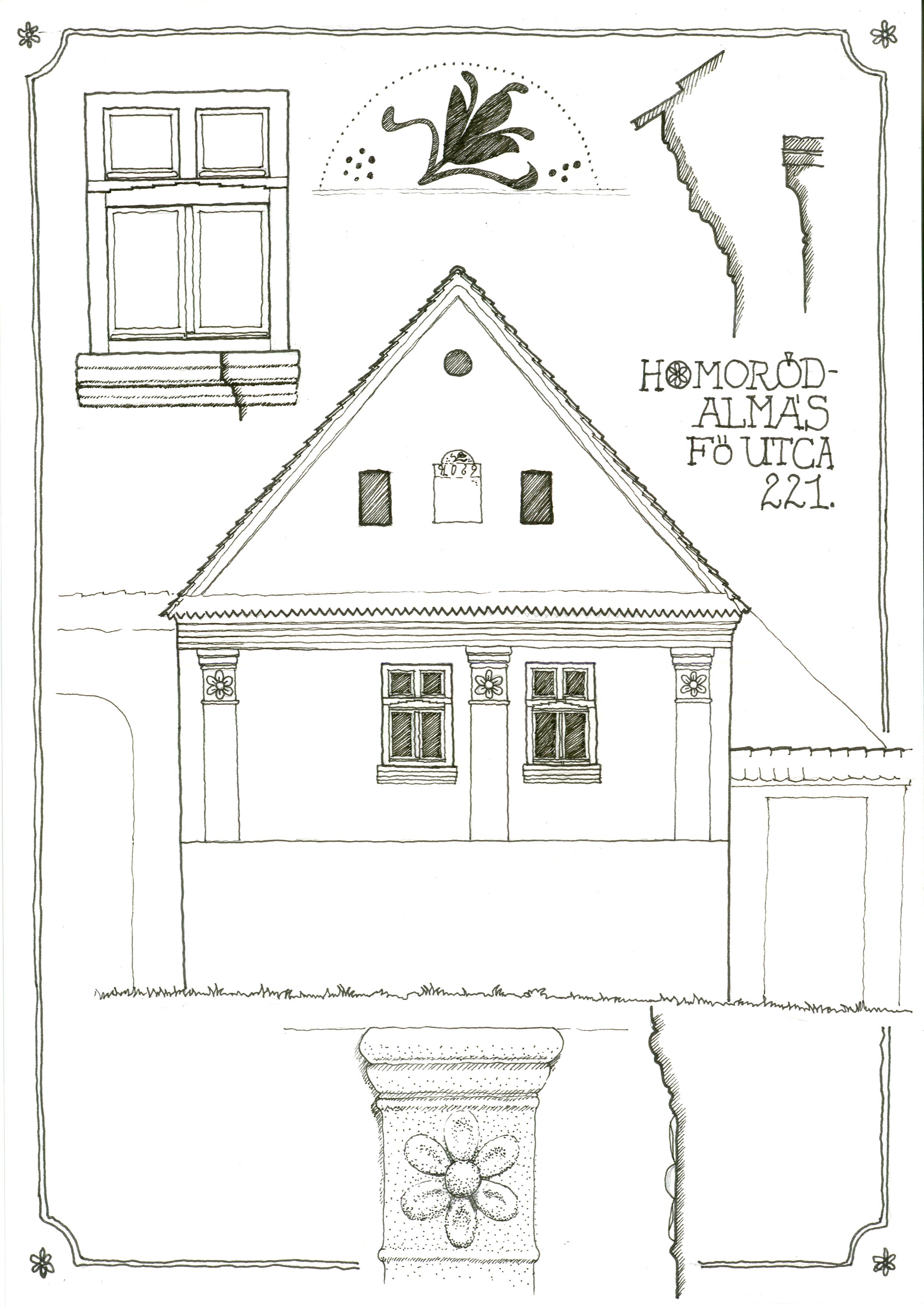Jelenleg elkezdtem a korábban különböző településeken fotóval dokumentált épületek utcai homlokzatait tablókra kirajzolni. A tablók egyszerűek, szűk szavúak, az utcai homlokzatot és egy-egy megfogható értékes részletet helyezek el rajtuk. A kézi rajzolás nem csak a megismerés de az élvezet eszköze is.
